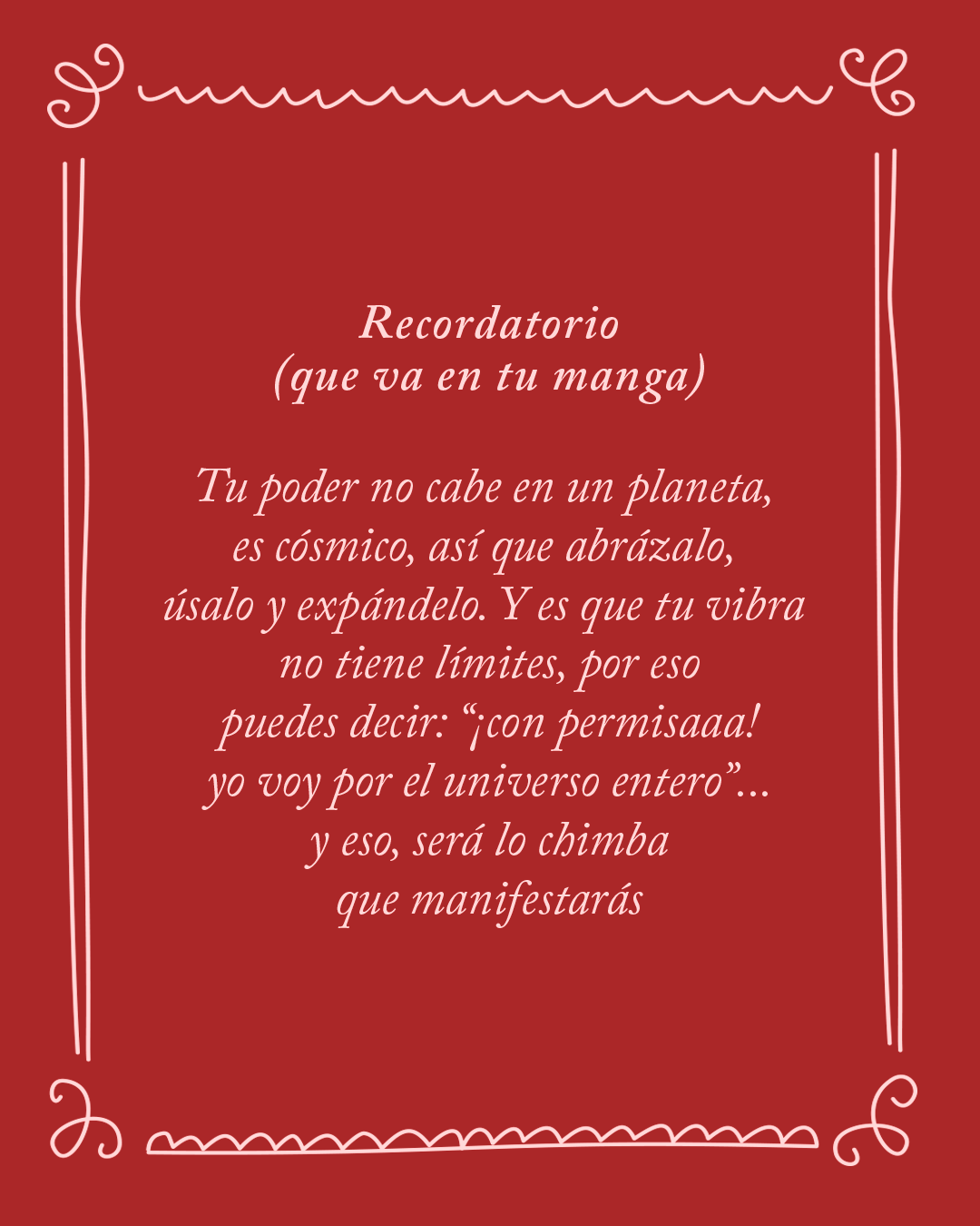 Este no es un buzo, es un recordatorio de que tu poder no cabe en un planeta, es cósmico, así que abrázalo, úsalo con estilo y expándelo. Porque tu vibra no tiene límites, por eso puedes decir: “¡con permisaaa! yo voy por el universo entero”... y eso, será lo chimba que manifestarás.