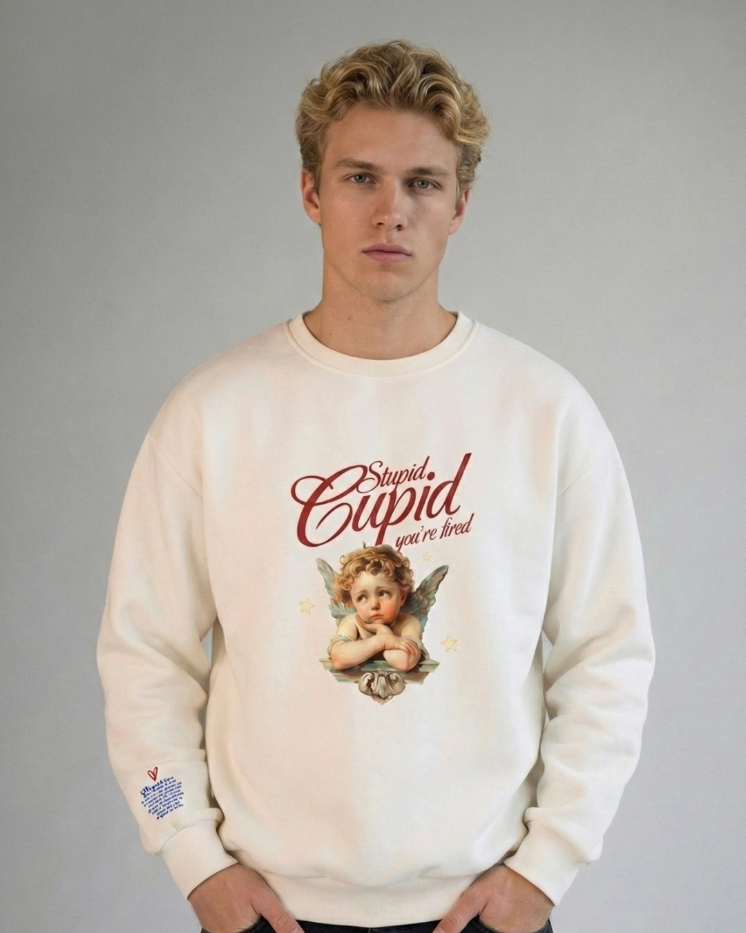 Este buzo dice lo que todos pensamos: no más amores mediocres, ni tóxicos, mucho menos dramáticos... en resumen, no más flechas mal tiradas. “Stupid Cupid, you’re fired” es la declaración oficial de independencia emocional con mucho estilo y obvio con mucha ironía.